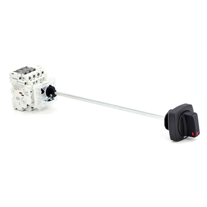 安装于机柜内侧的断路器能够从机柜的正面操作,通过带直径为4至5mm的钥匙柄的挂锁,将断路器锁定在off或on位置;延伸轴必须予以调节,以便在不同尺寸的机柜中使用,旋转手柄用(Φ22mm)螺母固定,更易于组装。